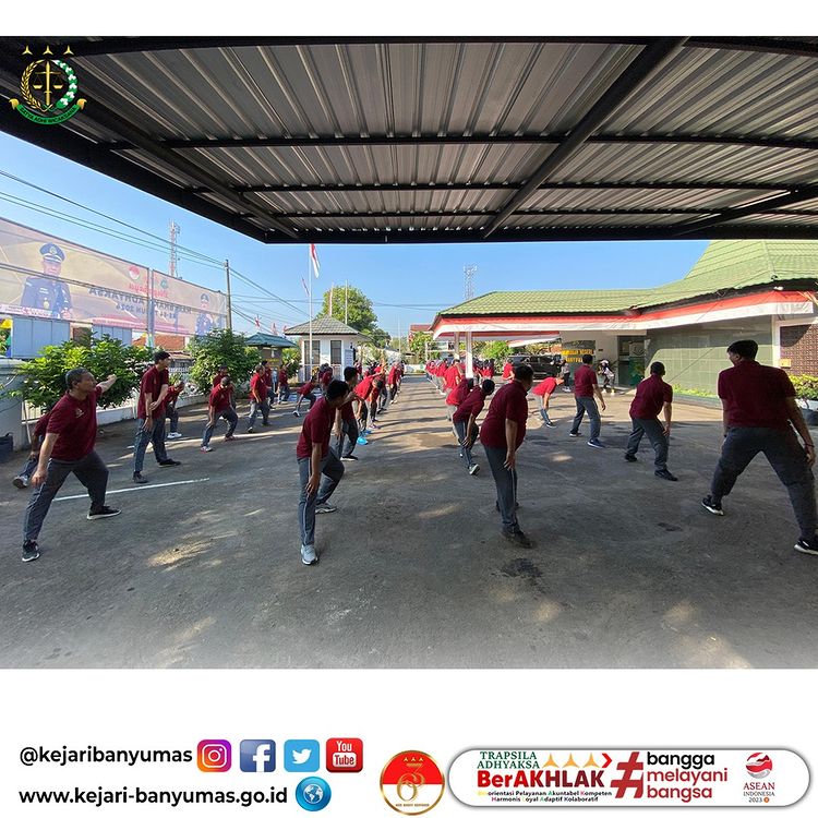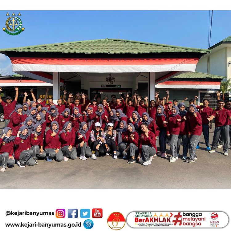 Banyumas. Jumat, 19 Juli 2024. Kepala Kejaksaan Negeri Banyumas Bpk Dr. Adung Sutranggono, S.H., M.Hum., bersama Ketua Ikatan Adhyaksa Dharmakarini Daerah Banyumas Ny. Yulina Adung beserta seluruh pegawai Kejaksaan Negeri Banyumas dan anggota Ikatan Adhyaksa Dharmakarini Daerah Banyumas Melaksanakan Senam Pagi Dalam Rangka Hari Bhakti Adhyaksa Ke – 64 & HUT XXIV Ikatan Adhyaksa Dharmakarini Tahun 2024 di Halaman Kejaksaan Negeri Banyumas.